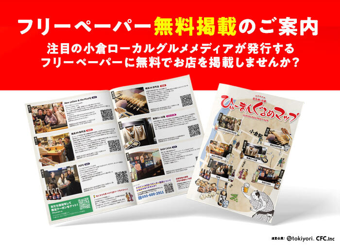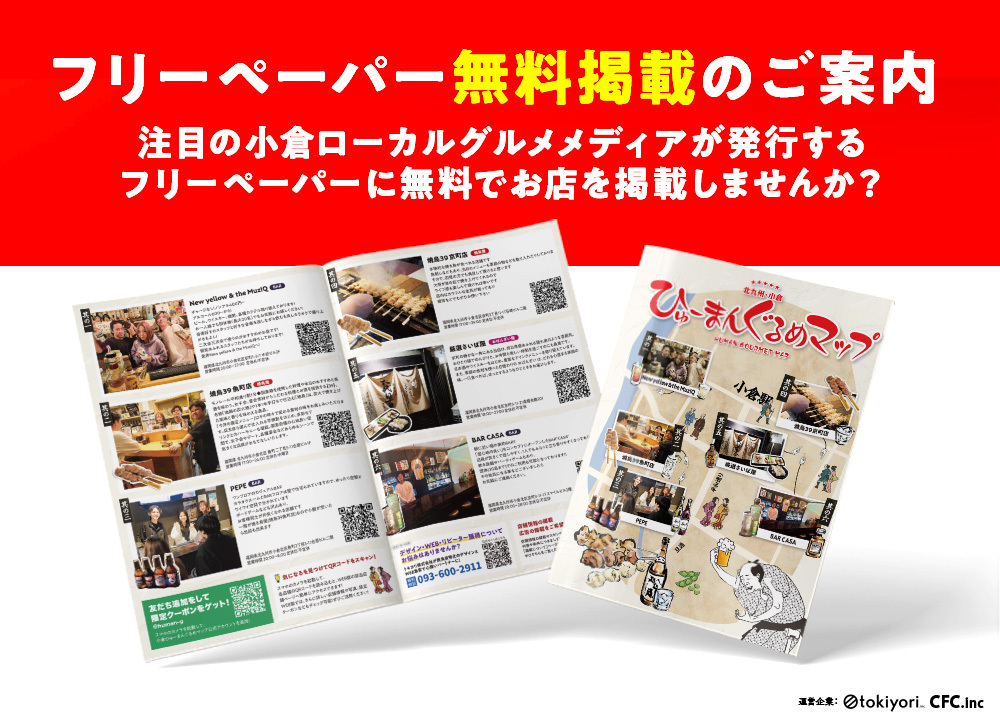 誌面は、地元の飲食店だけでなく、西鉄イン小倉・東横イン小倉駅北口・ステーションホテル小倉などのホテルにすでに設置済みで、今後さらに設置箇所を拡大予定です。